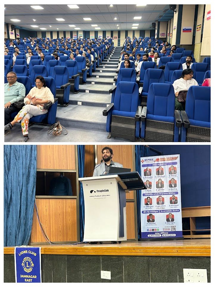 A seminar program was organized for Ayurvedic students on the topic of "Hemato-Oncology" by Lions Club of Jamnagar East and J.C.R.I and I.T.R.A., Jamnagar, by Dr. Sarang Waghmare, Shashwat Hospital, Rajkot. At Dr. P. M. Mehta Auditorium, Ayurvedic University, Jamnagar from 03.00 to 04.30 pm. Hemato-Oncology is a part of Hematology that deals with cancers of the blood and lymphatic system, such as leukemia, lymphoma and multiple myeloma. In this seminar, SVDG Shri La. Nirav Bhai Vadodaria, La. Shri Amarjitsinh Ahluwalia, La. Prakash Thakrar, La. Ramesh Bhai Patel and other dignitaries were present.