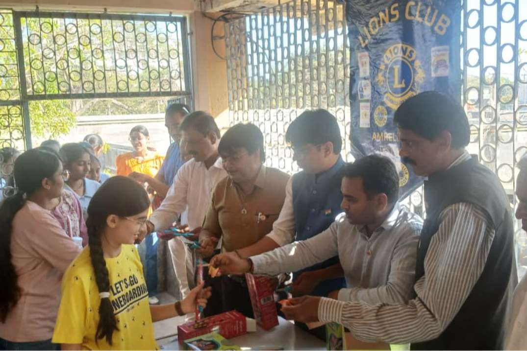 As the Class 10 board exams are starting today, Lions Club Amreli Main has encouraged the Class 10 students by giving them ballpoint pens, chocolates and roses.