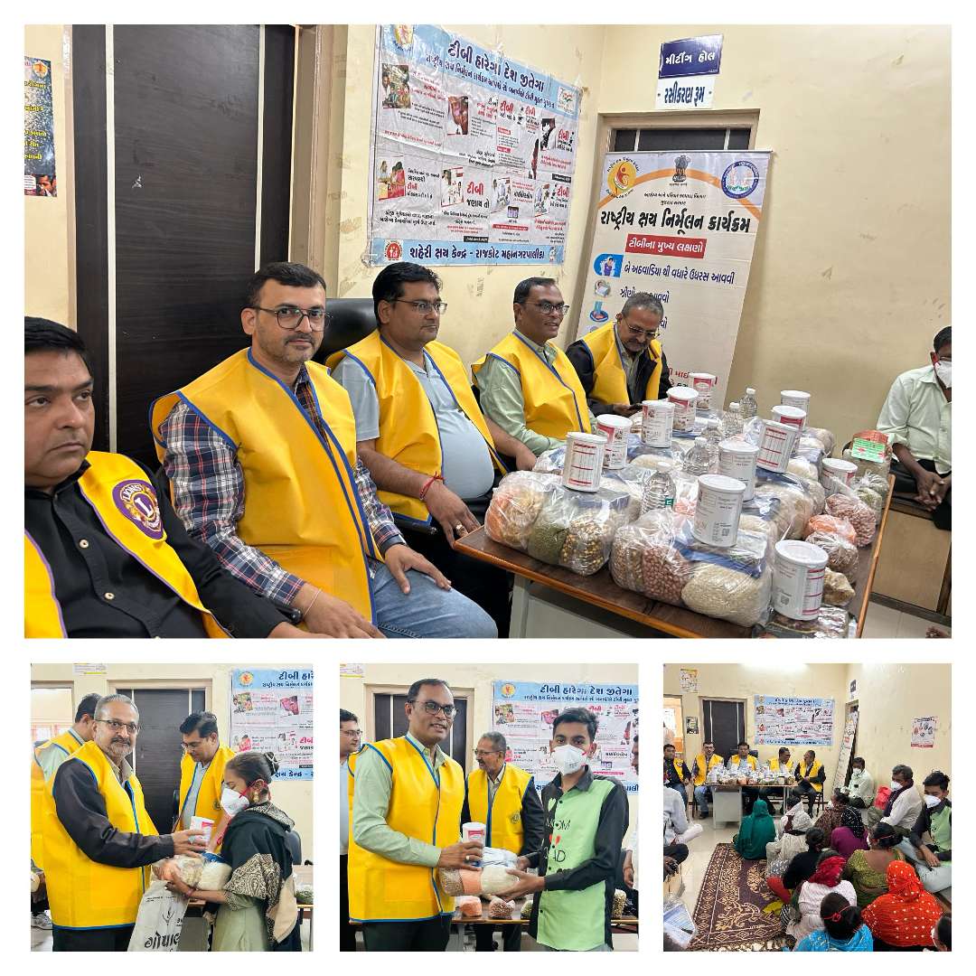 હંગર વીક - લાયન્સ ઇન્ટરનેશનલ ટીબી મુક્ત ભારત અભિયાન ને સાકાર કરવાના હેતુથી ટીબી ના જરૂરિયાતમંદ દર્દીઓને દર મહિને રાજકોટ પ્રાઇડ દ્વારા પોષણ કીટ આપવામાં આવે છે. આ અનવયે તા. તા.08/01/26 ના રોજ મવડી આરોગ્ય કેન્દ્ર ખાતે લાયન્સ કલબ રાજકોટ પ્રાઈડ દ્વારા 31 ટીબીના દર્દીઓને પોષણ આહાર કીટ આપવામાં આવી. આ પ્રસંગે PMCC દિવ્યેશભાઈ સાકરિયા, ફર્સ્ટ વાઇસ ડિસ્ટ્રિક્ટ ગવર્નર ડો. હાર્દિક મહેતા, સેકંડ વાઇસ ડિસ્ટ્રિક્ટ ગવર્નર નીરવભાઈ વડોદરિયા, GMT સમીરભાઈ ખીરા ખાસ ઉપસ્થિત રહ્યા હતા. ટીમ પ્રાઇડ