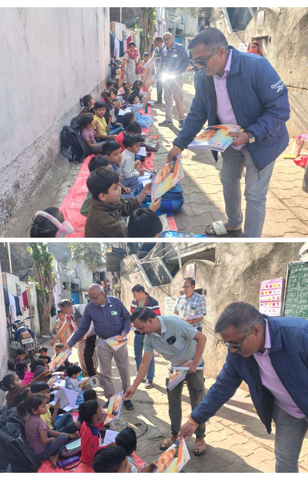 On Friday, 02.01.2026 at 11 am, books were distributed by the Lion Club of Jamnagar East to the students studying in the school run by Shri Saraswati Shishu Mandir Vibhapar, Jamnagar in the slum area near Gokul Nagar Jakat Naka. In this project, 1. President Shri La. Rajeshbhai Borsadia 2. La. Deepakbhai Pansuriya 3. La. Kushalbhai Bordia 4. La. Rameshbhai Patel 5. La. Prakashbhai Thakrar 6. La. Rashmikant Bhai Virani and 7. La. Vipulaben Virani were present. Project Chairman-La. Vipulaben Virani Project Donor-Lion Club of Jamnagar East Family.