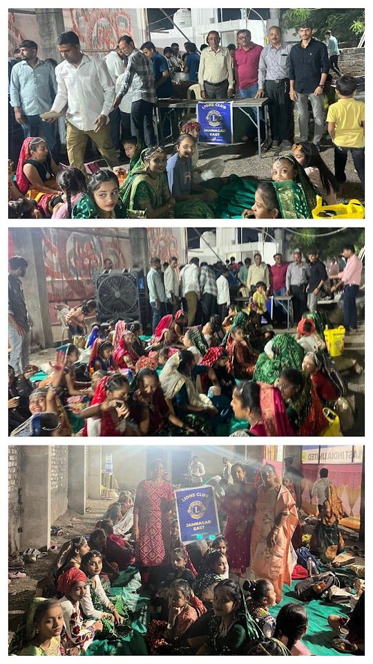 Served Pani Puri breakfast to the Girls, Sisters and brothers and all those present during Navratri festival celebration at Khodiyar Garbi Mandal, Satellite Park, Jamnagar. And also given gift to the Girls and sisters.