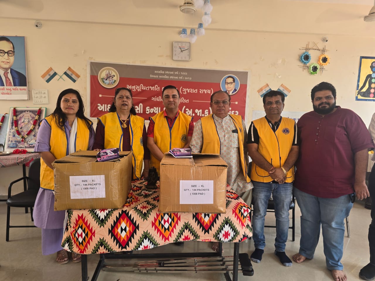sanatry pad distribution to schhol girl at sandipani road porbandar